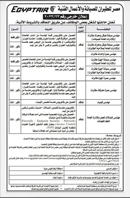 اعلان وظائف شركة مصر للطيران EGYPT AIR